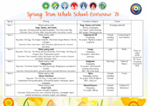 During this year, we have many exciting experiences planned and our curriculum enables each individual child to grow in confidence, providing the skills and knowledge for them to achieve their full God-given potential. Here is our overview for the Spring Term: