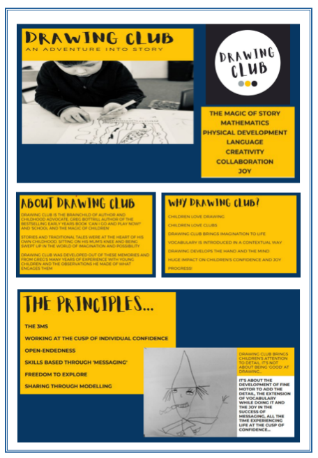 The children will be exploring the books on our long-term plan. In addition, they will also be taking part in Drawing Club