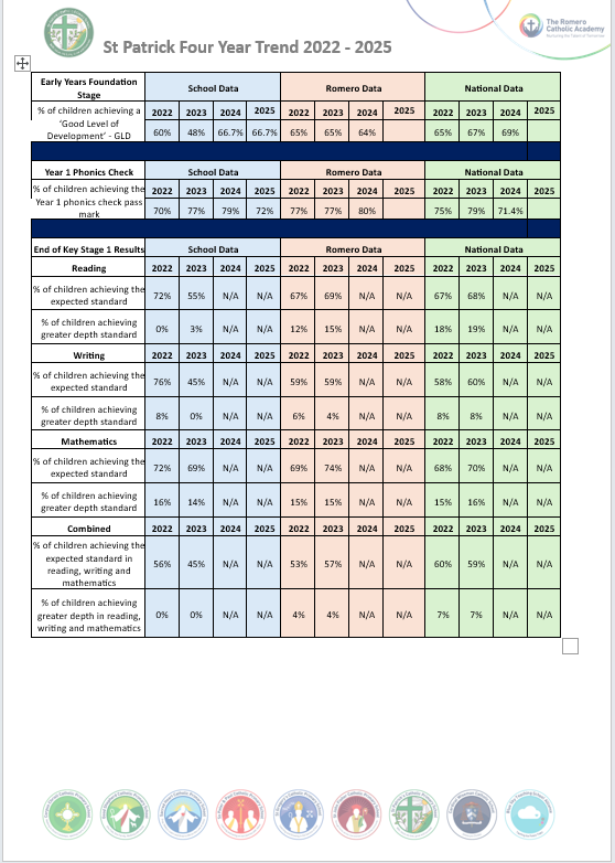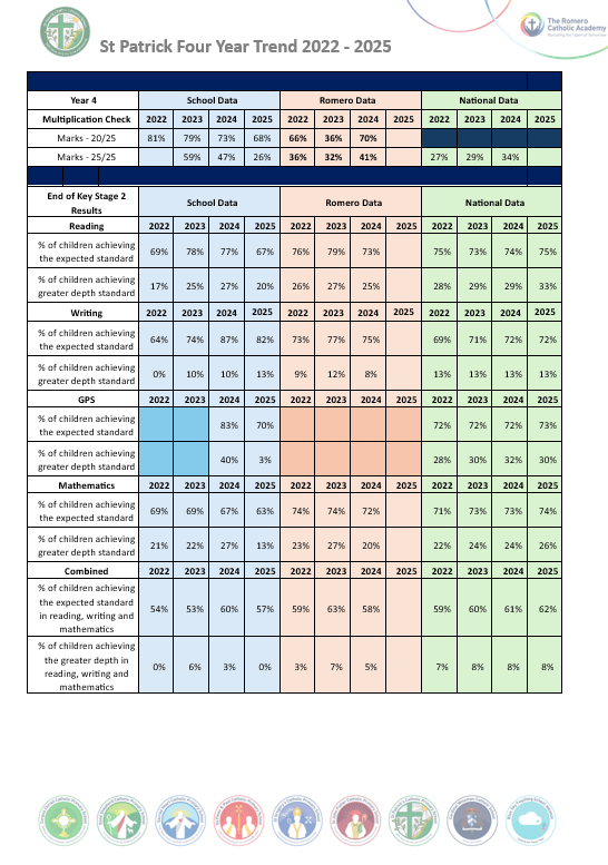 The data source is the Government School Performance Comparison Service. Due to the COVID-19 Pandemic, all Statutory Testing for 2019-2020 and 2020-2021 were cancelled for those academic years, which have been confirmed by DfE. Therefore, there are no outcomes from 2019-2020 and 2021–2022 to report.